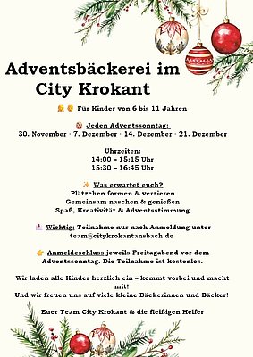Anmeldeschluss jeweils Freitagabned vor dem Adventsonntag. Die Teilnahme ist kostenlos.