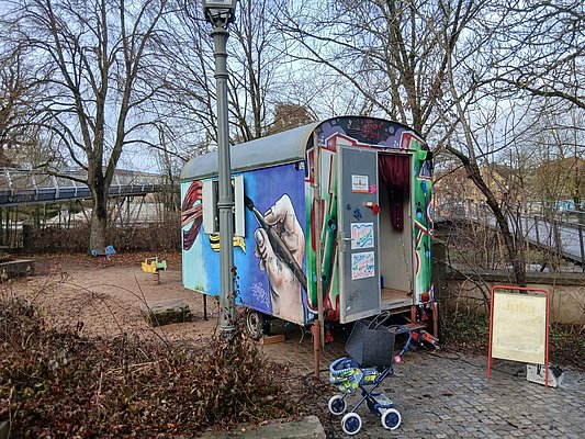 Am 3. Advent wird unser Juks-Bauwagen an der Riviera zur Druckwerkstatt.